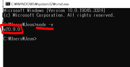 3-1. node.js 설치 완료 후 설치가 잘 되었는지 확인하는 방법