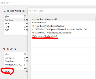 윈도우 > 고급 시스템 설정 > 환경 변수 > Path